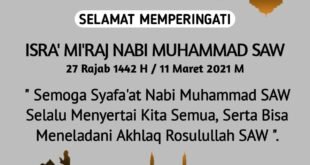 Selamat Memperingati ISRA’ MI’RAJ NABI MUHAMMAD SAW 27 Rajab 1442 H / 2021 M , Semoga Syafa’at Nabi Muhammad SAW Selalu Menyertai Kita Semua, Serta Bisa Meneladani Akhlaqnya Rosulullah SAW. Amiin